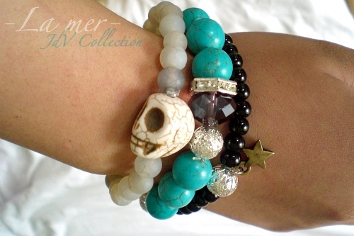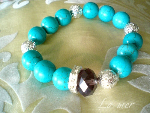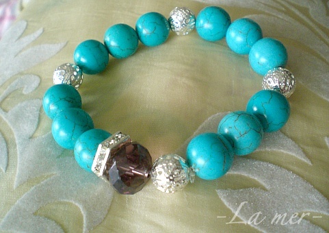 Stilig armbånd inspirert av strendene langs Cote d'Azur, Frankrike. Armbåndet er laget av genuine agat perler med en stor swarovski krystall. Alle materialene som er brukt er nikkelrfrie.
