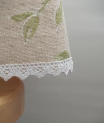 Kjolens overdel er foret med et ensfarget, hvitt bomullsstoff. Kjolekanten nederst er pyntet med en hvit, vevd bomullsblonde.