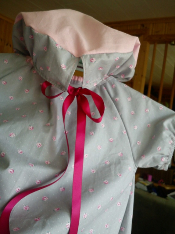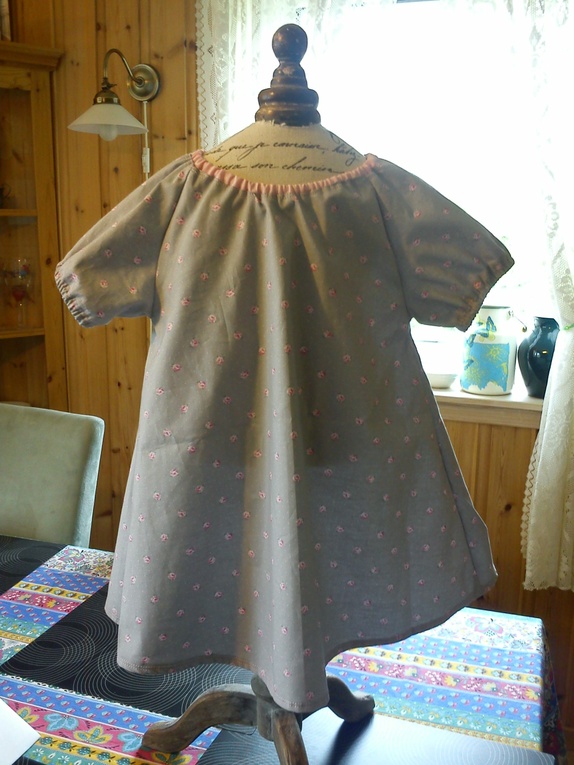 Denne kjolen/tunikaen er sydd i ett grå/blått bomullsstoff med små søte roser, den har strikk i halsåpningen og ermene. Ensfarget stoff i halslinningen.Passer til pike 2-3 årMatchende lue følger med