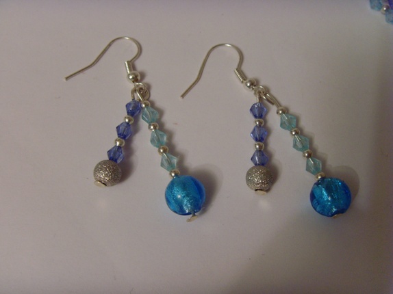 Det følger med øredobber i tilsvarende farger.