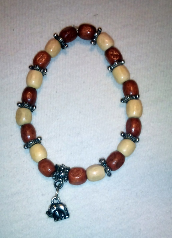 Strikkarmbånd med treperler og en mini-elefantcharm, med mellomledd.