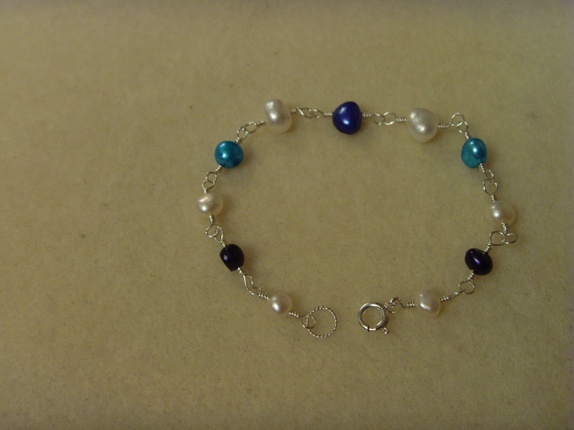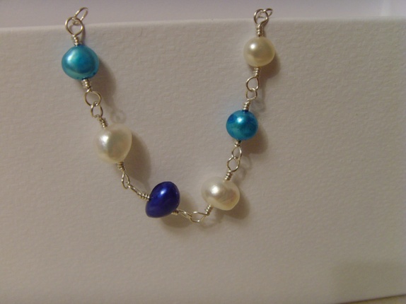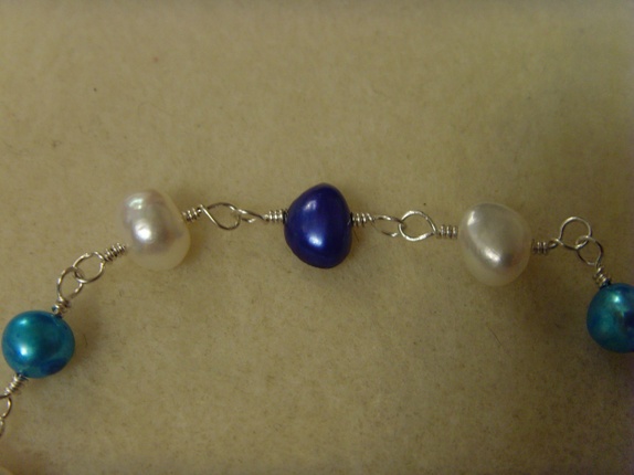 Fargen på ferskvannsperlene er i diverse blånyanser og hvitt. Det er også forskjell på størrelsen på perlene. Fra 4-5 mm til 7-8 mm.