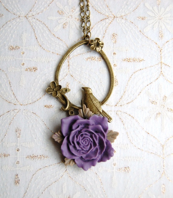 Antikkgull kjede med nøkkel og stor luciteblomst.Lengden på lenken er ca 70 cm lang.Lengden på anhenget er 8.5 cm.