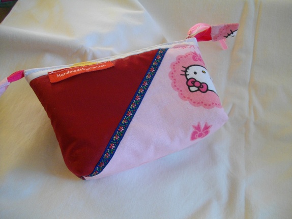 Vattert og foret mappe lukket med glidelås. Str: 12 x 18 x 5 cm. Kan vaskes på 40 gr.