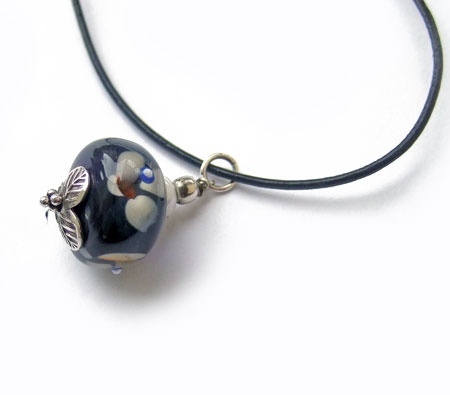 Denne perlen har jeg selv laget med å smelte glass over åpen flamme.