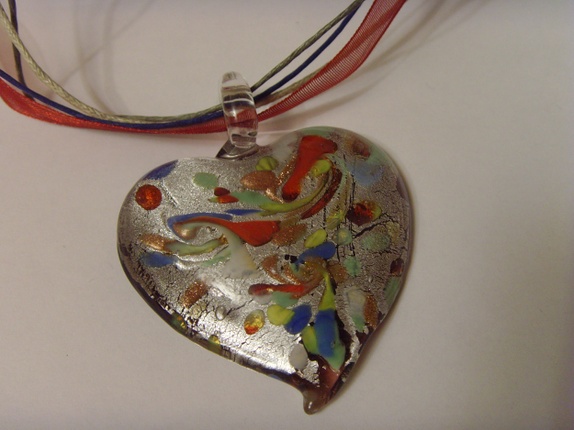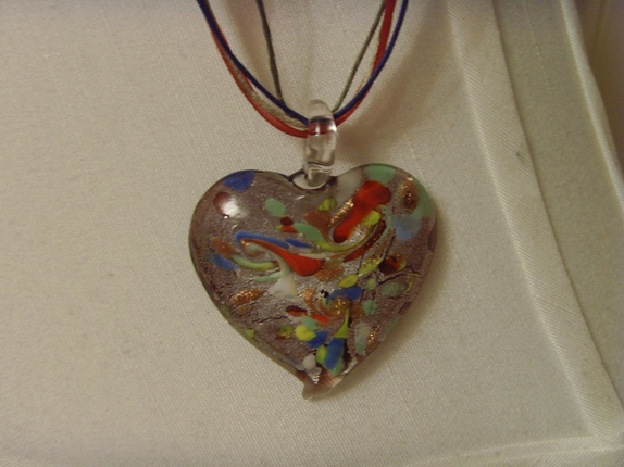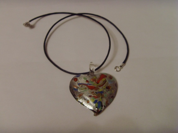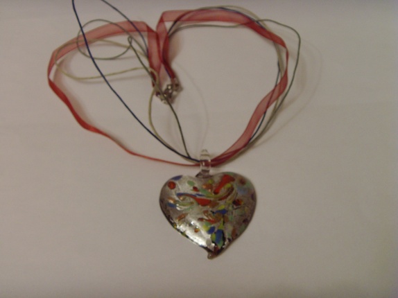 Enkelt smykke med hjerte formet glassanheng. Anhenget er ca 4cm.
