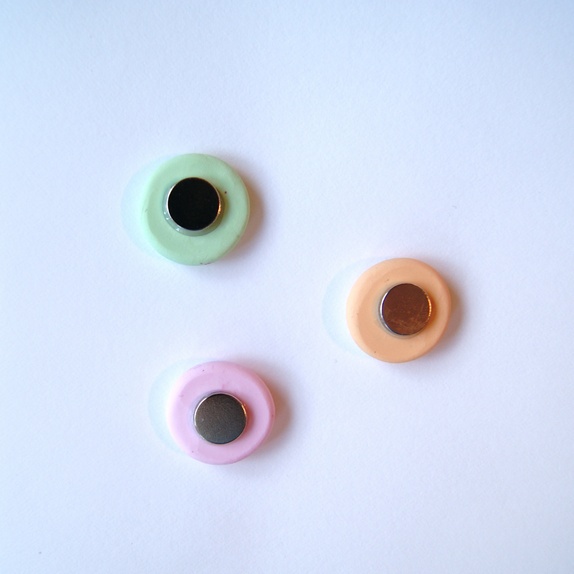 Tre stk. magneter laget i fimoleire.