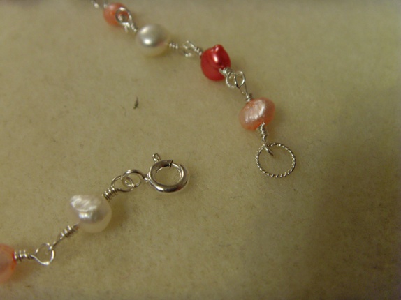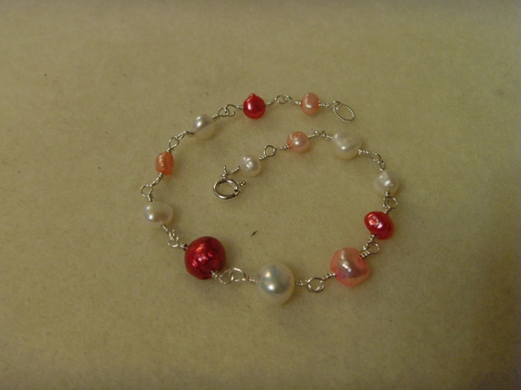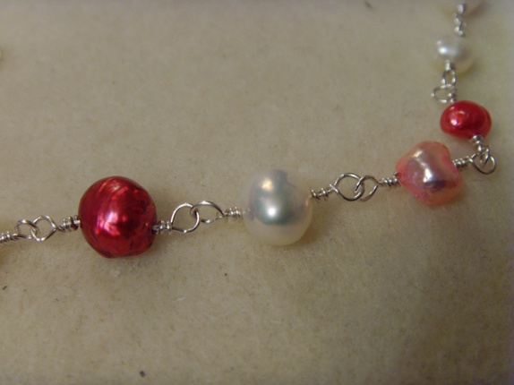 Fargen på ferskvannsperlene er i diverse rosanyanser og hvitt. Det er også forskjell på størrelsen på perlene. Fra 4-5 mm til 7-8 mm.