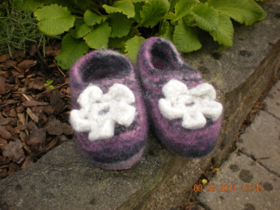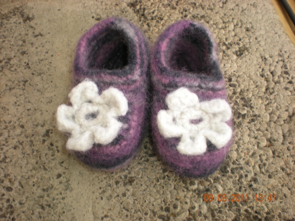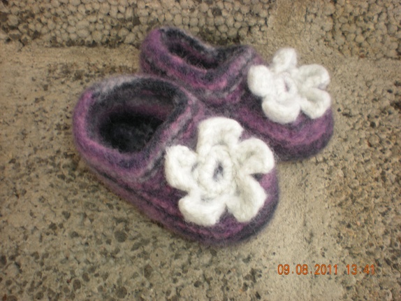 Deilige tøfler i ull med sklisåle.Tøflene er tovet.
