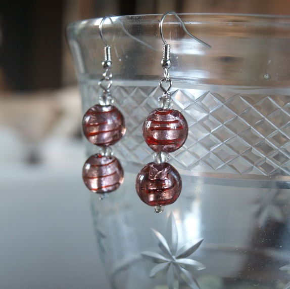 Ørepynt laget av håndlagde Murano perlerNikkelfri ørekrokMåler inkl. krok ca 5 cm