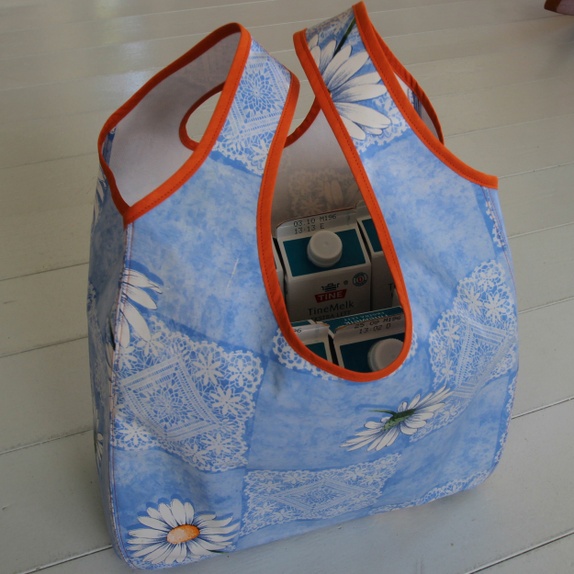 Posen er sydd etter modell av de i plastikk og rommer utrolig mye - du får enkelt en hverdagshandel i en slik - for helge- og høytidshandel trenger du nok noen flere. Den er mye mer behagelig å bære enn engangsposene og du slipper å engste deg for at posen ryker selv om du har handlet melk til hele familien (den rommer minst 8 liter).