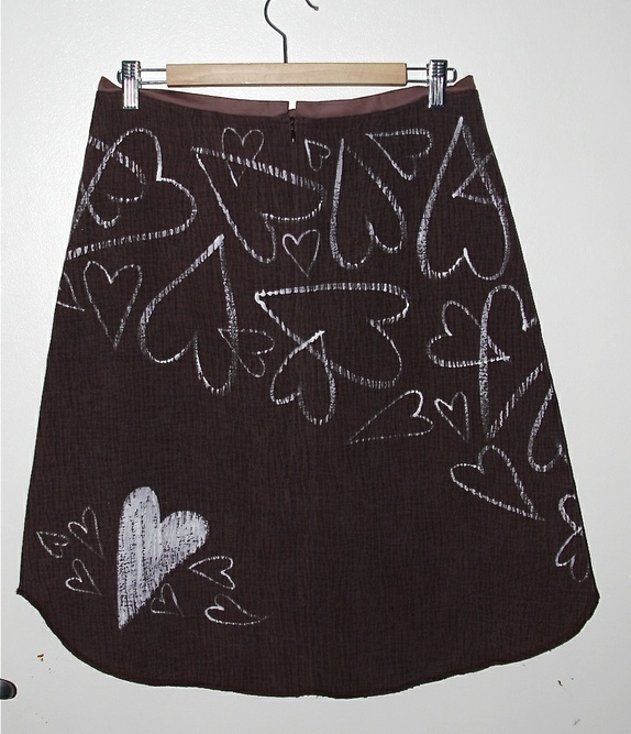 Alle skjørtene er dekorert med tekstilmaling av meg selv. Det kan vaskes på vanlig 40 grader.