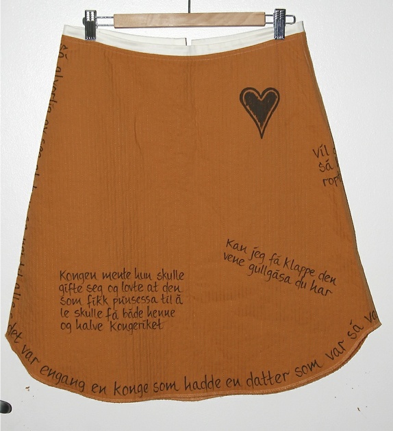 Alle skjørtene er dekorert med tekstilmaling av meg selv. Det kan vaskes på vanlig 40 grader.