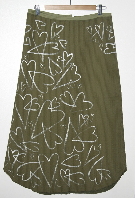 Alle skjørtene er dekorert med tekstilmaling av meg selv. Det kan vaskes på vanlig 40 grader.