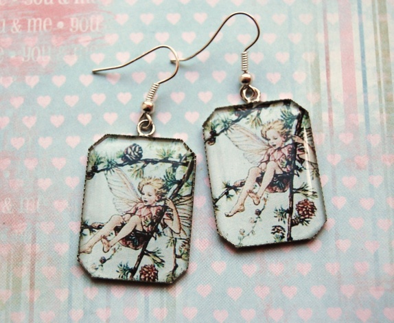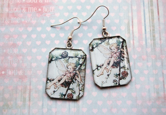 Et par sølvfargede øredobber.Epoxi på plate. Hele øredobben måler 5.2 cm.