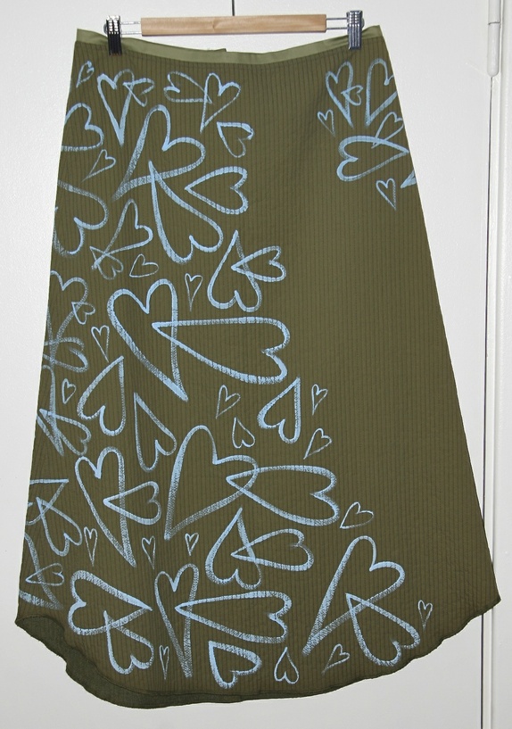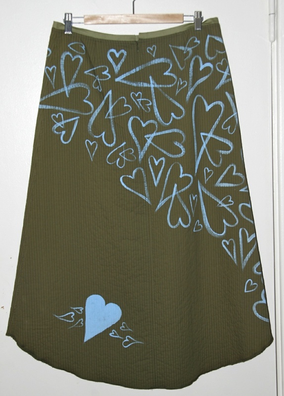 Alle skjørtene er dekorert med tekstilmaling av meg selv. Det kan vaskes på vanlig 40 grader.