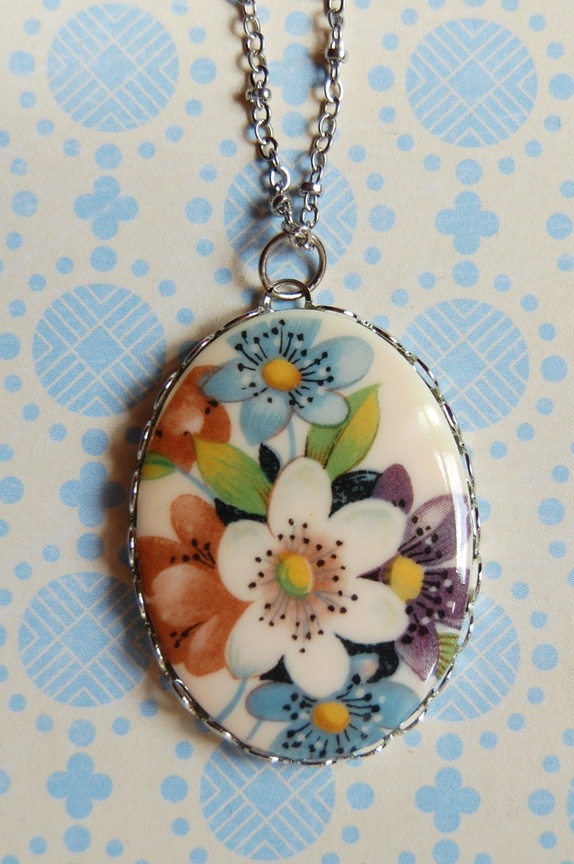 Sølvfarget kjede med medaljong.Lengden på lenken er ca 69 cm lang inkl låsen.Lengden på anhenget er 4 cm.