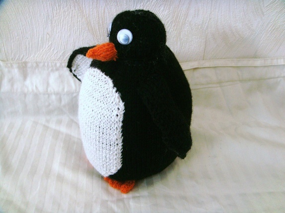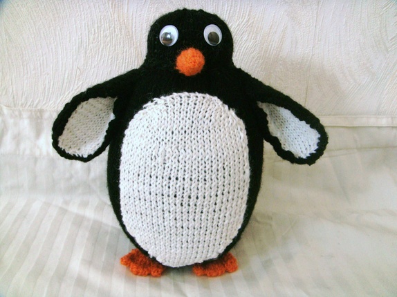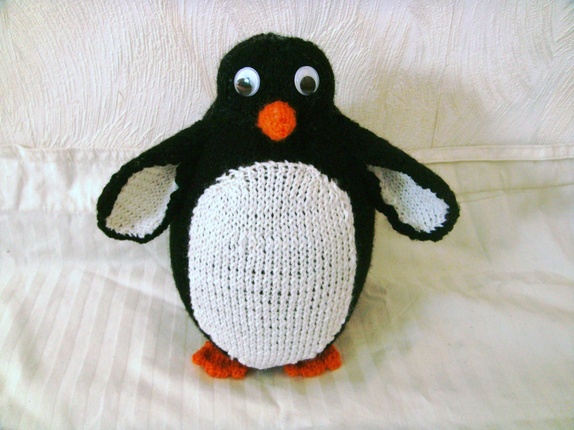 Pingviner er fascinerende både for store og små,denne pingvinen er strikket i 75% ny ull og 25 % polyamide.Så den kan vaskes på 40 grader ,ullprogram i maskinen uten skyllemiddel.