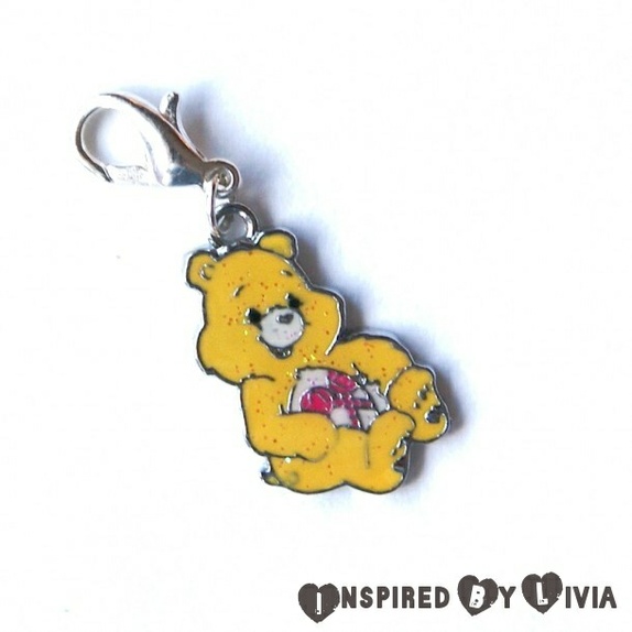 Glitrende gul nostalgisk Care Bear-charms. Karabinkroken henges enkelt på armbånd glidelåser mm.