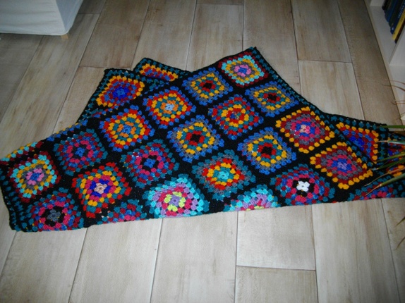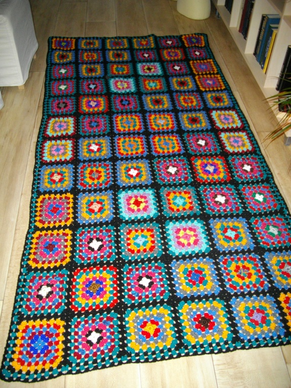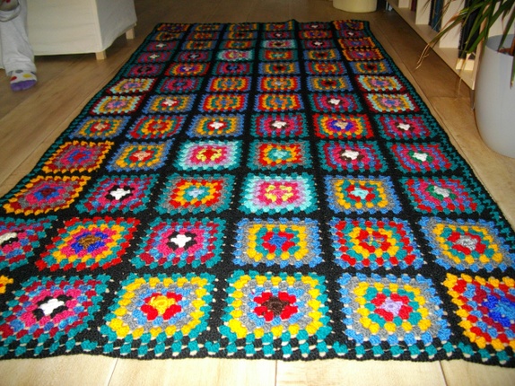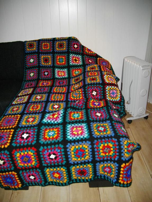 Et nydelig sengeteppe heklet i tradisjonelle oldemorsruter slik min mormor lærte meg. Teppet er heklet i et mykt og godt blandingsgarn som ikke klør, men som alikevel har ullens varmende egenskaper.