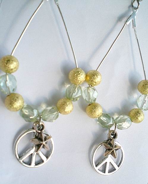 Stilige øredobber med peace og stjerne anheng. Metallet er selvfølgelig nikkelfritt.