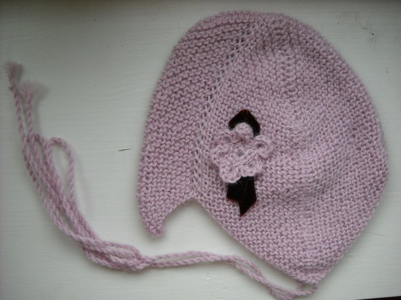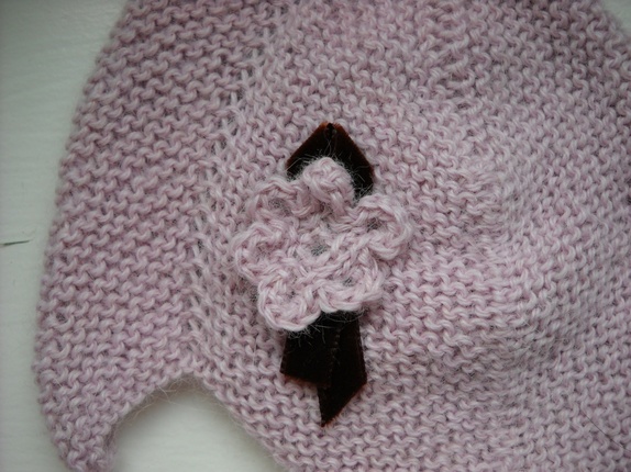 Nydelig babylue i myk alpakka. Str ca 4-8mnd. Med heklet rose. Håndvask 30 grader.