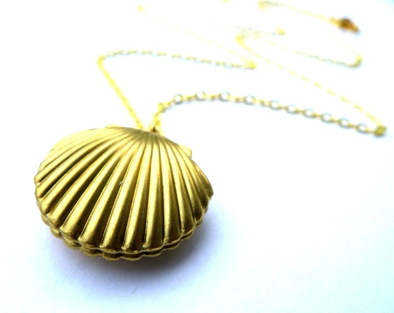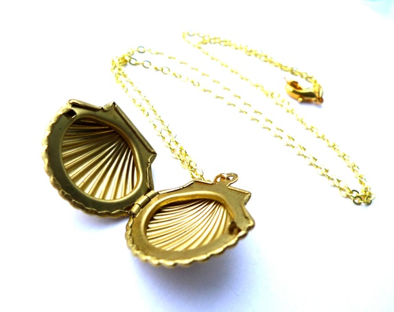 Nydelig skjellformet vintagemedaljong med plass til et lite bilde av en du holder kjær.