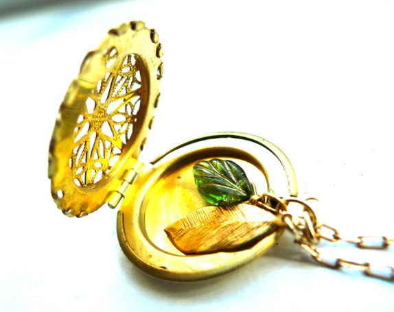 [Tags: feminin, feminine, medaljonger, gult, gyllen, gyllent, forgylt, presset, gull, grønn, grønt, filigran, natur, smykke, filigran, høst, vår, sommer, mønster, filigrans, metall, blad, blader]