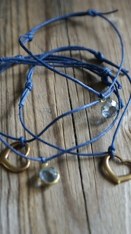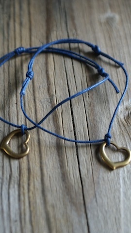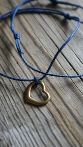 Vokset bomullsnor og et vakkert lite vintage messing hjerte. Hjertet måler ca 1,5x1,5 cm.