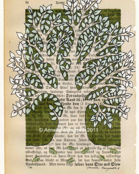 søkeord: tre , grønn , natur , kunst , illustrasjon , tegning , original , tekst , bokside , carambatack , annette mangseth ,