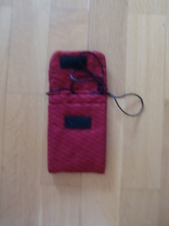 Vesken har to rom og lukkes med borrelås. Justerbar snor til å ha rundt halsen. Den er sydd i gode bomullstoffer med vattering slik at mobilen er skjermet for støt.