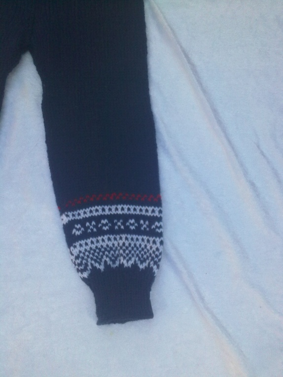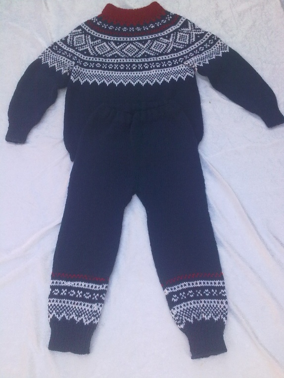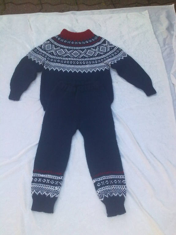 Marius genser og bukse, strikket i superwash garn, kan maskinvaskes.