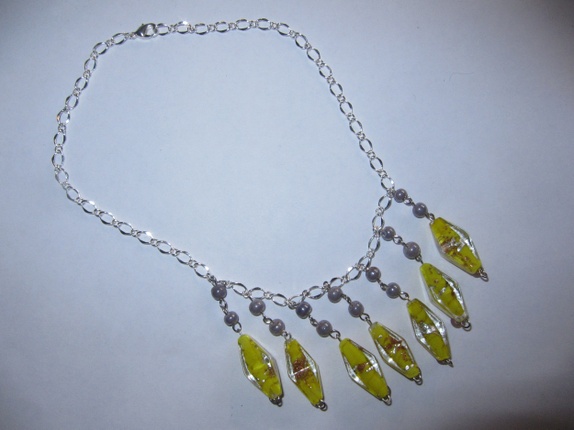 Halssmykke med gule avlange glassperler