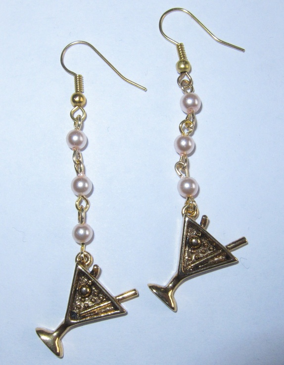 Øredobber med hvite perler og gullfarget coctailanheng