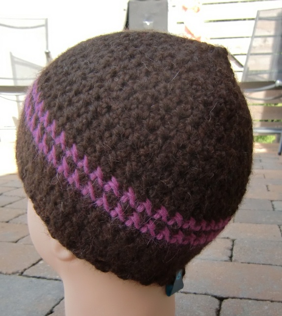 Lua er brun med to rosa striper.