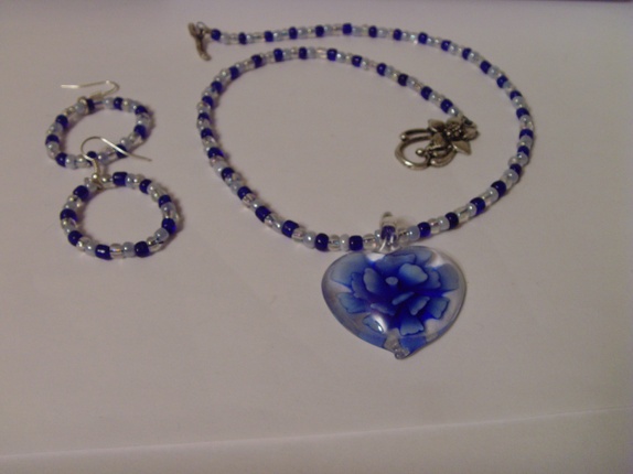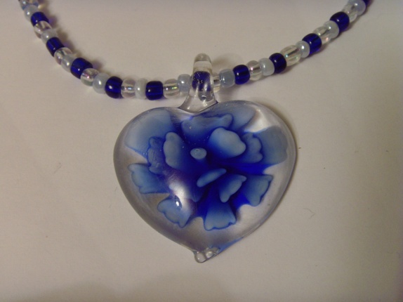 Smykket består av 4mm små seed beads. Fargene går igjen i glassanhenget som er ca 2 cm langt.