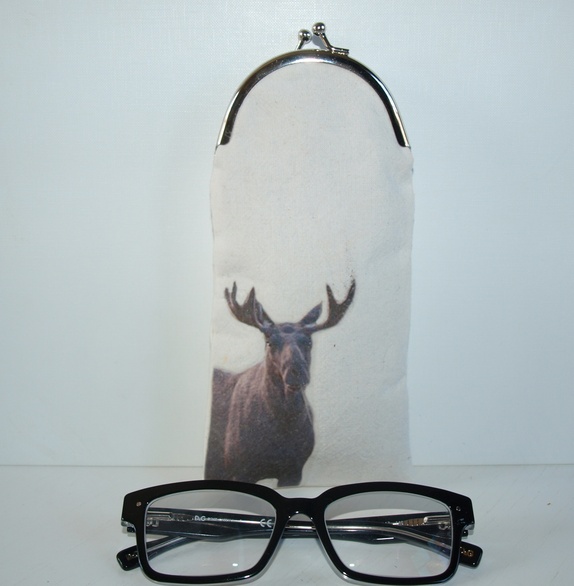 brille etui sydd i ubleket bomull med påstrøket motiv.Foret med brunt stoff.Vliselin mellom lageneBredde:9 cmHøyde: 20 cm
