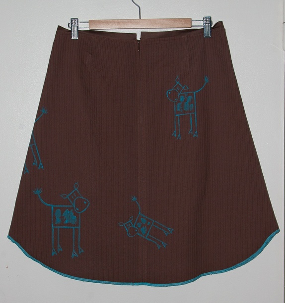 Alle skjørtene er dekorert med tekstilmaling av meg selv. Det kan vaskes på vanlig 40 grader.