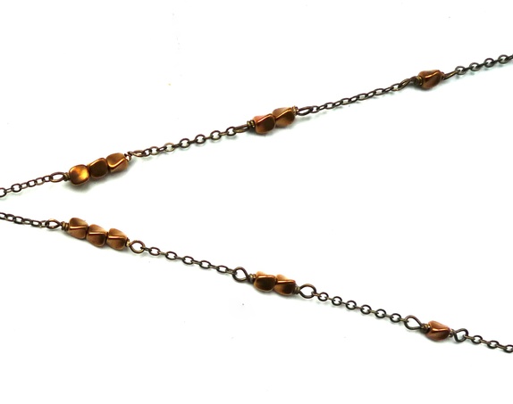 ▫ Kjedet er 60,5 cm langt, i patinert messing.