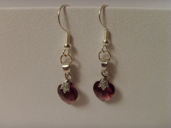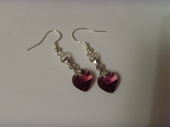 Øredobber med 10 mm små swarovski hjerter i fargen Amethyst.
