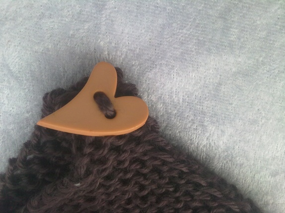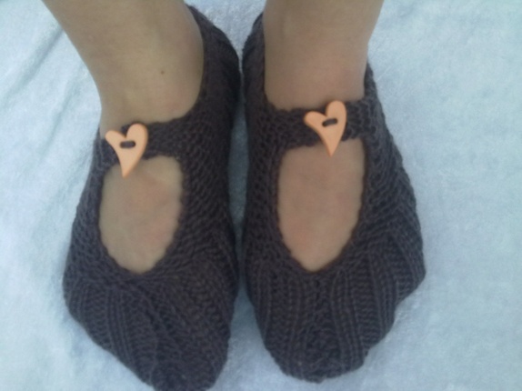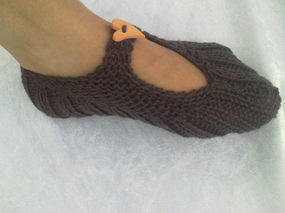 Kjempe myke og gode lommetøfler strikket i garn som består av bomull og akryl. Kjekke og ta med seg bort eller som en liten gave til noen. kan brukes sommer som vinter.farge: brun med aprikosfarget hjerteknapp.Vaskes i maskin på 40 grader.