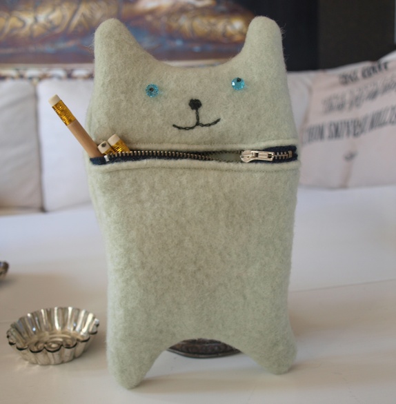 Sydd i tykt ullstoff fra Panduro.Farge lys grønn.Åpnes/lukkes med glidelåsHøyde: 28 cmBredde: 13 cm