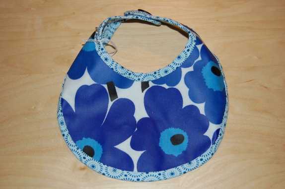 Blå smekke i Marimekko voksduk. Ca str 1 år.
