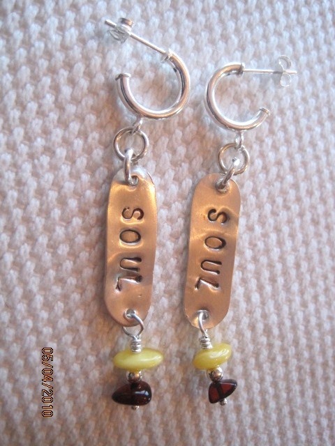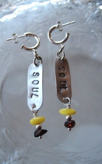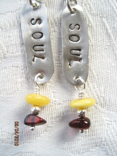 Håndsaget sølv ørepynt med rav. Merk at det lille bildet viser riktig farge på ravbitene. Alle deler i ekte sølv
