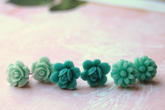3 par nydelige øredobber.Luciteblomster på stift av kirurgisk stål.ca 1.2, 1.2 og 1.3 cm