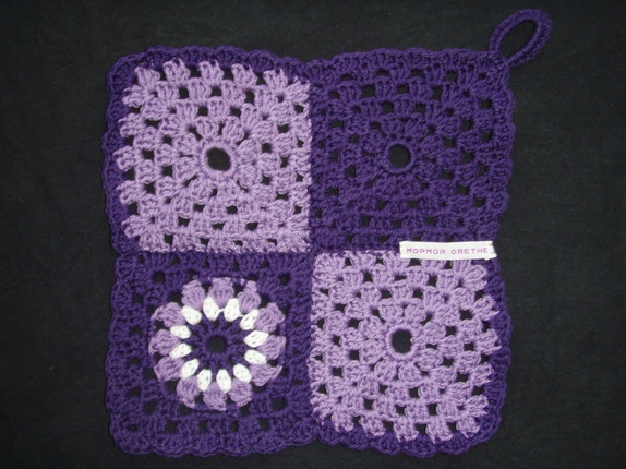 *RYDDESALG* Mormors grytekluter, lilla/hvit
