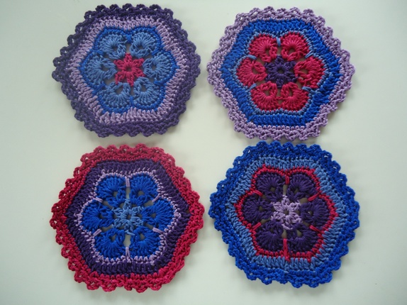 "JULIA"Glassunderlag 4-pack heklet i gjestal sport.