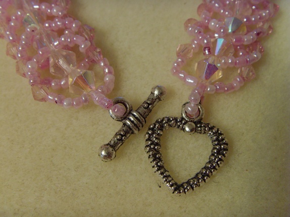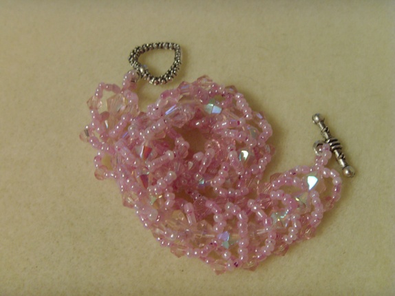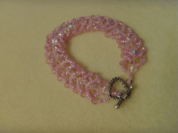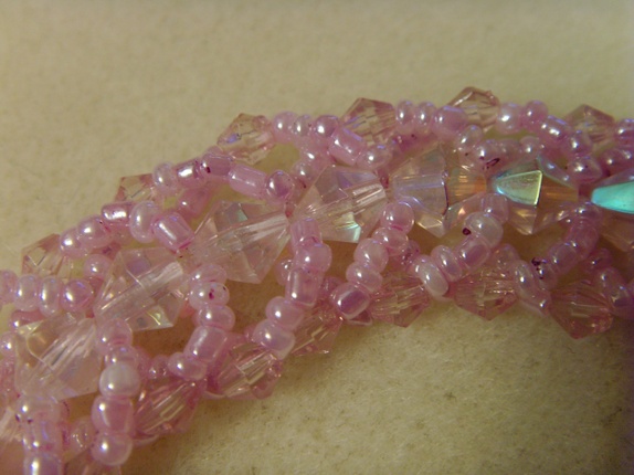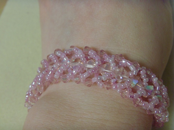 Armbåndet er sydd sammen av små seed-beads med fireline tråd. Lengden er ca 20,5 cm.