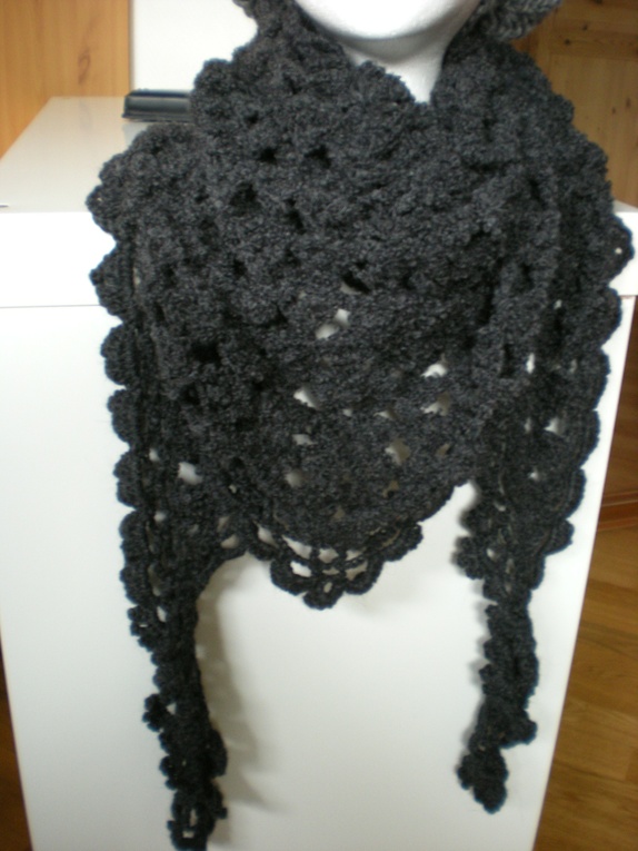 Selve sjalet er heklet i Alpaca Boucle, et fantastisk mykt garn med fin struktur og god strekk. 80% alpakka,15% ull og 5% nylon. Håndvask 30 grader. Ikke bruk skyllemiddel.