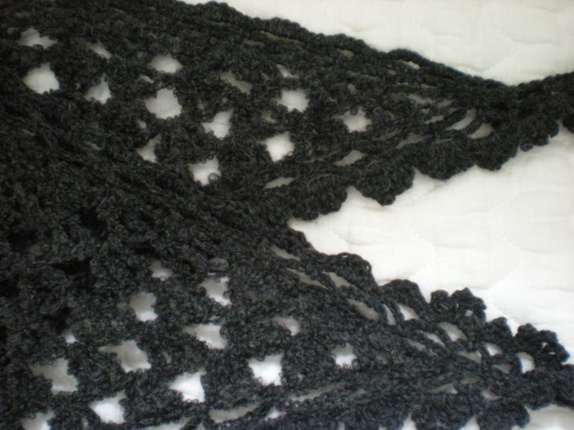 Charlotte sjal/skjerf i alpakka bouclegarn m/blondekant